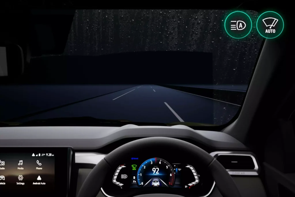 Kiger’s design has been fully revamped with a bold new front, muscular shoulders and a dynamic, sporty stance. This 5‑seater SUV now features full 360° LED lighting : DRLs, headlamps, tail lamps and new LED fog lamps. With 205 mm ground clearance, front and rear skid plates, roof bars and low gear mode, Kiger handles both city drives and off-road escapes.